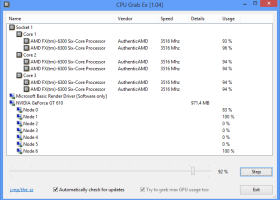 All CPU Grab Ex reviews, submitted ratings and written comments become the sole property of Windows 7 download. You acknowledge that you, not windows7download, are responsible for the contents of your submission. However, windows7download reserves the right to remove or refuse to post any submission for any reason.