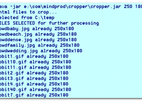 Converts set of jpg, jpeg, png or gif images to a common size e.g. for an animated gif. Crops and scales images to a common specified size. Java source included. To convert a single file, type: java.exe -jar C:commindprodcroppercropper.jar 200 300 rabbit.gif where 200x300 pixels is the desired size. The results replace the old file, so you had better make a backup just in case this is not what you want. You can also list several files on the command line: java.exe -jar C:commindprodcroppercropper.jar rabbit.gif C:mydircat.png To use convert the current directory of jpg, png and gif files: java.exe -jar C:commindprodcroppercropper.jar . to convert a whole directory tree of images: java.exe -jar C:commindprodcroppercropper.jar -s E:imagedirs Sorry no wildcards, just . , and .. DON'T USE WILDCARDS unless you deeply understand how they work. Windows expands them, not cropper, and feeds them to cropper (or any other program) as a giant list of all the directories and files in the current directory. Cropper will thus tend process all the files in your directories, when you just meant to process the files in the current directory. If you have the jar extension set up as executable, you can abbreviate: C:commindprodcroppercropper.jar .