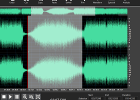 Visually edit an audio file (Cut, Copy, Paste, Paste From File, Paste Mix, Paste Mix from File).