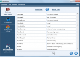 The Freelang Dictionary is an offline dictionary software. You download the program once, then you can add as many wordlists as you wish. Basically a wordlist is made of two columns, one language in each: Spanish-English, German-French, and so on. We have most of the main languages spoken, as well as many regional languages, and rare or endangered languages. You can easily switch from one language to another, or switch between several dictionaries. Hundreds of wordlists are available on our websites to download for free, mostly from/to English, from/to French and from/to Spanish. Once you have installed a wordlist, you can either browse it, or look up a word by typing its first letters. The lists are stored on your PC (or phone), so you don't need an Internet connection. You can also add words to the lists, delete some entries, modify existing entries, or create your own wordlists from scratch. If you created a new dictionary or if you updated an existing one, make sure you use the 'Tools/Send an update to Freelang' menu, so we can publish your work! Your name will be mentioned (unless you instruct us otherwise) and you will retain full copyright. The Freelang Dictionary also enables you to create personal practice lists, to practise your vocabulary. Just choose words from the main wordlist (manually or randomly) and they will be added to your practice list. If the 'automatic' option is on, the word will be displayed and then its translation, after a short delay, whereas in interactive mode, you have to type the translation yourself. You are not limited to one practice list, as you can manage several. The sound is also a powerful feature of our dictionary: you can record the entries or have them recorded, then play them. A few dictionaries have already been recorded and the sounds can be downloaded for free. Finally, you can customize the interface by choosing another colour, changing the logo or even translating the menus in your own language.