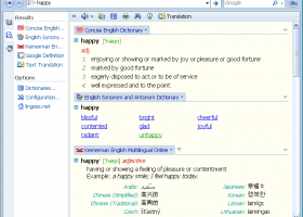 Lingoes is an easy-to-use dictionary and text translation software. It offers lookup dictionaries, text translation, cursor translator, index list and pronunciation of word in over 60 languages. These language are English, French, German, Italian, Russian, Chinese, Japanese, Korean, Spanish, Portuguese and more... Features: 1. Cross translation over 80 languages; 2. Text translation over 43 languages; 3. Ctrl + Right mouse button key for the cursor translation; 4. Zoned word translation 5. Clipboard text capturer; 6. Words and Texts Pronunciation; 7. Free dictionaries and thesauruses; 8. Online dictionaries and Wikipedia; ...
