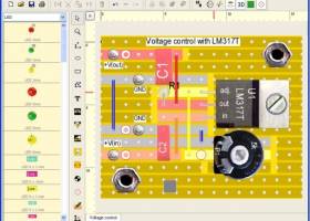 LochMaster displays both sides of the board, which are editable simultaneously. You can choose from several board types with different layouts and grids. All required functions, like wiring, splitting tracks, soldering, placing components, etc. are included and appear very realistic. The well-sorted and extendable library contains lots of material, that can be placed on the board: Electric and electronic components, mechanical elements, symbols and labels are available. Even “flying” soldering points are handled.