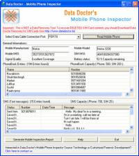 Mobile phone inspector utility generates complete report of mobile and SIM card phonebook entries, SMS capacity status ...