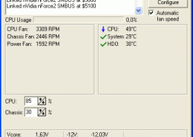 SpeedFan monitor temperatures from several sources. By properly configuring SpeedFan, you can let it change fan speeds based on system temperatures. When choosing parameters for the minimum and maximum fan speed, try to set them by hand (disable all the VARIATE FANs checkboxes) and listen to the noise. When you hear no noise from the fan then you can set that value as the minimum fan speed for that fan. I suggest to use 100 as the maximum value, unless you hear a lot of noise from it, in which case you might reduce the maximum speed to 95 or 90. You can set, say, 60 as the maximum value and, sometimes, I myself set it that way. Consider that when the WARNING temperature is reached, the program sets the fan speed to 100, whatever maximum speed you selected. One last word should be said regarding the USE FAN x listbox. In my pc, more than one temperature changes when a fan runs faster. You can configure on which fan every temperature should rely. On my system, TEMP1 and TEMP3 are both influenced by FAN1.