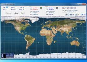 This application shows a world map with the position of the Sun and Moon in real-time or in a specific date.