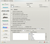 Wally is a Qt4 wallpaper changer using multiple sources like files, folders, FTP remote folders, Flickr, Yahoo!, Panoramio, Ipernity, Photobucket, Buzznet, Picasa, Smugmug, Google, Vladstudio and deviantART images. It is available in many languages. Supported Linux window managers are GNOME, GnomeShell, KDE3, KDE4, XFCE4, BlackBox, FluxBox, Window Maker, and FVWM (experimental).